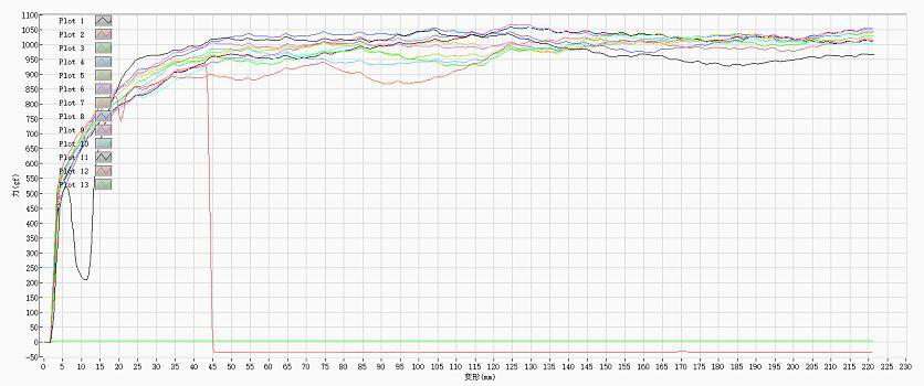 无亲水涂层有石蜡油时,其摩擦力约为800-850gf